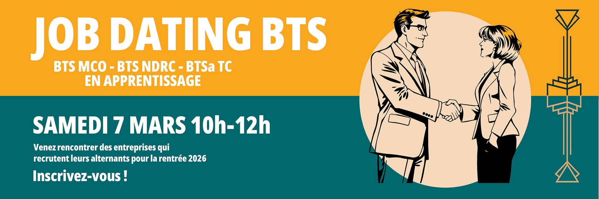 Entreprise ou Candidat au BTS : Inscrivez-vous à notre job dating du samedi 7 mars 10h-midi.