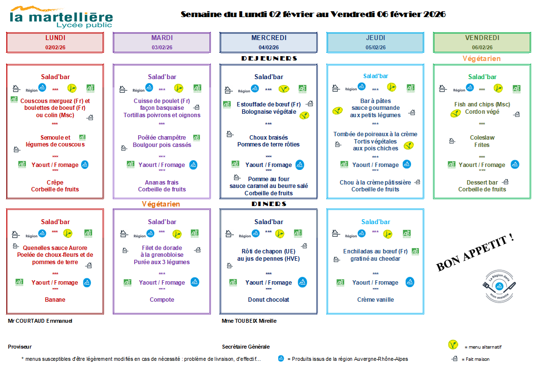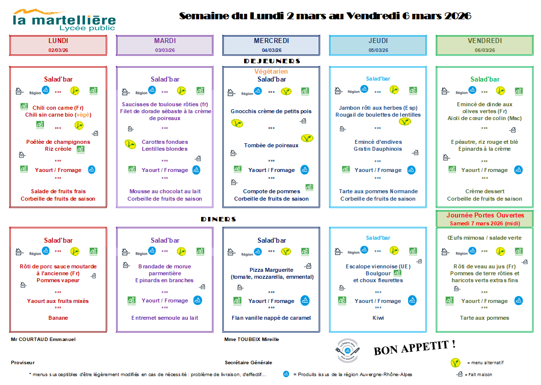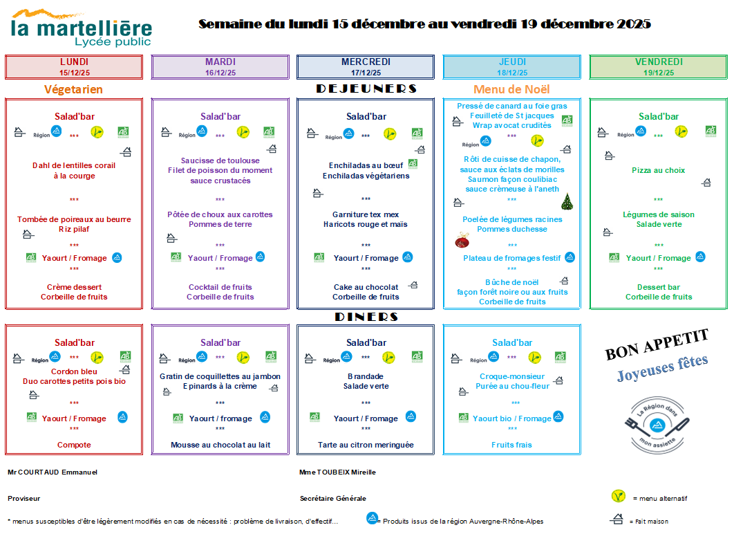 Menu de la restauration scolaire